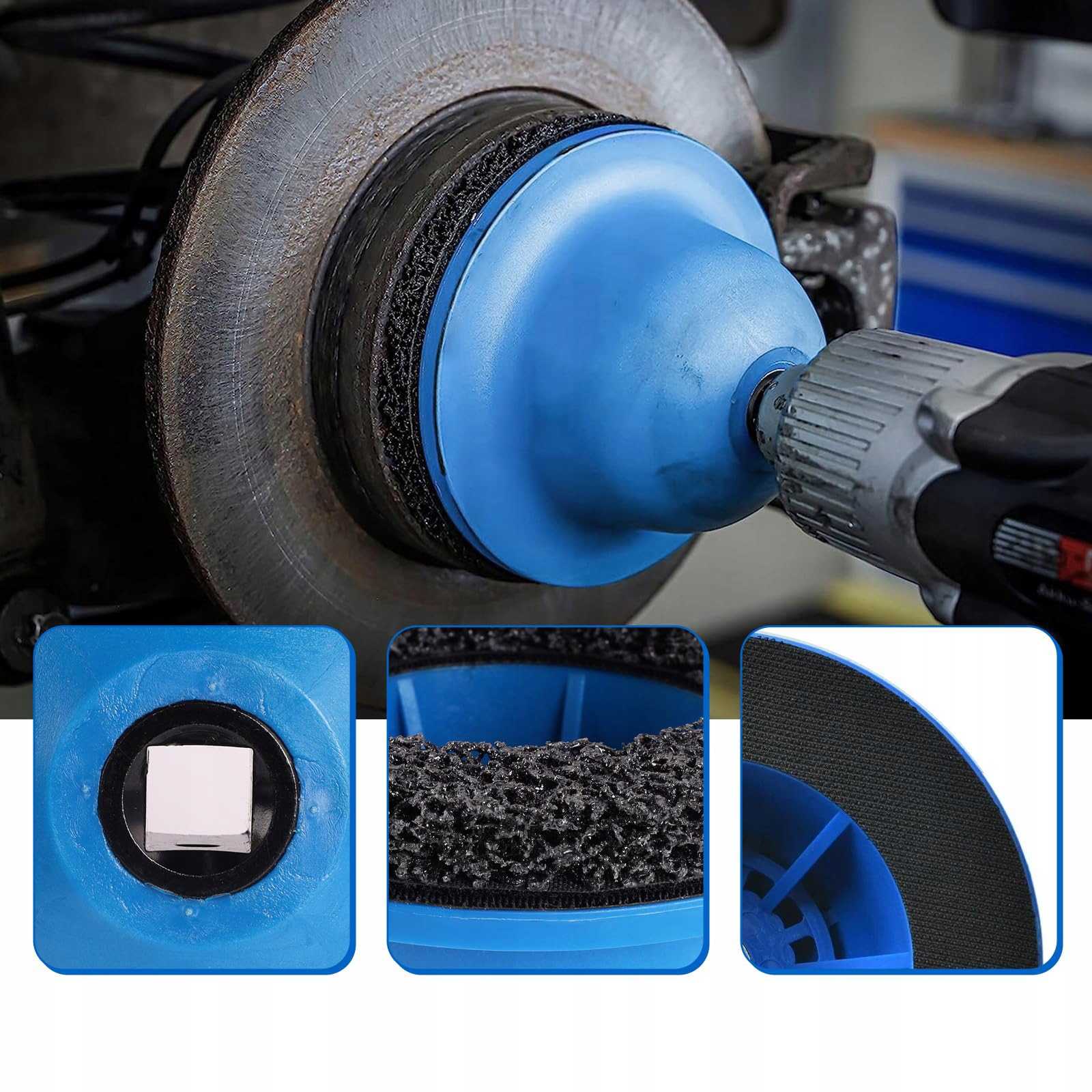 Do szybkiego czyszczenia i usuwania brudu i rdzy z piast kół i tarcz hamulcowych, zapewniając czyste i wolne od rdzy czyszczenie powierzchni styku.