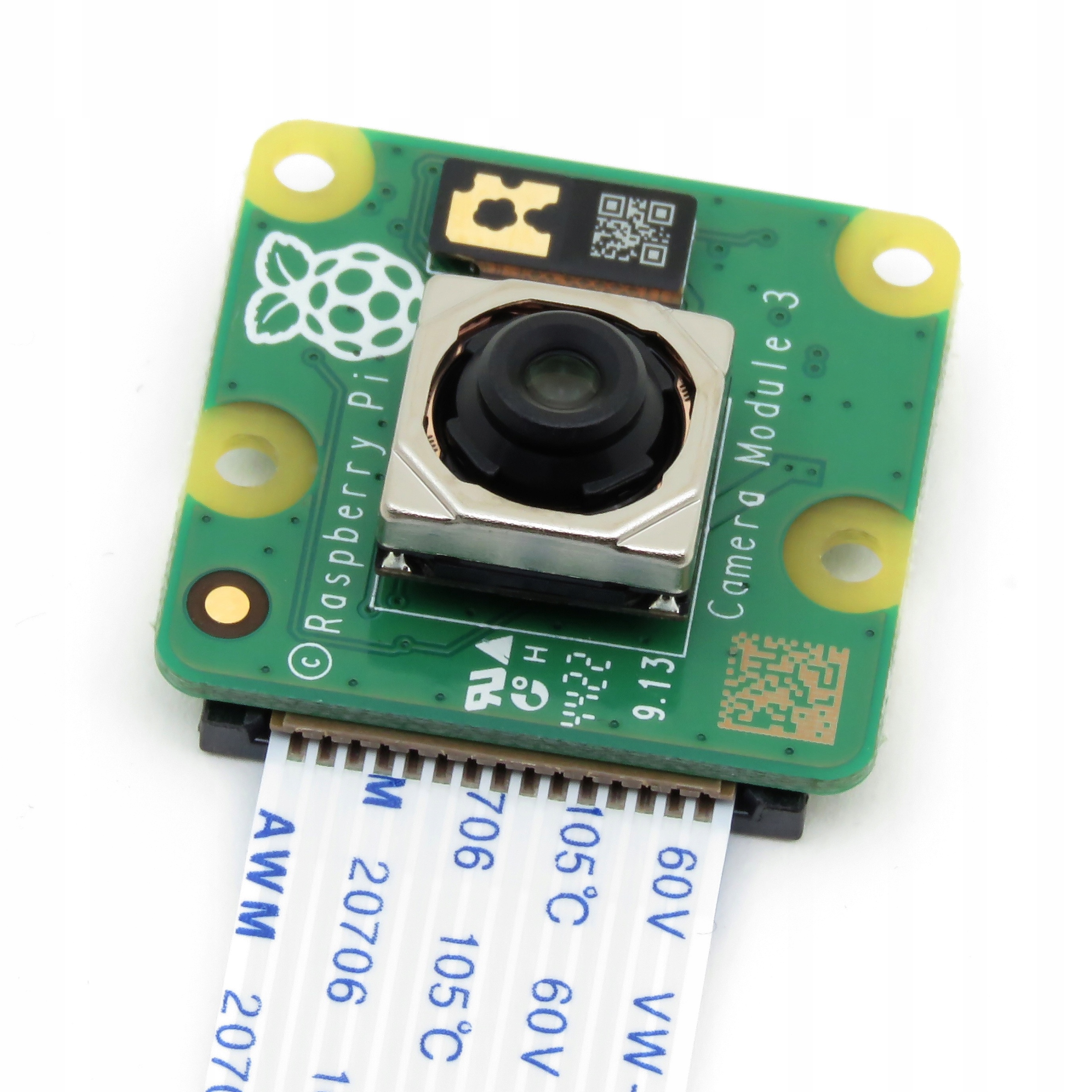 Moduł kamery Raspberry Pi Camera Module 3, wyposażony w matrycę Sony IMX708 o rozdzielczości 12 Mpx i obiektyw o kącie widzenia 75 stopni z autofokusem sterowanym za pomocą interfejsu I2C. Względem poprzedniego modułu została poprawiona czułość w trudnych warunkach oświetleniowych oraz dodana sprzętowa obsługa HDR. Za płynną regulację ostrości odpowiada technologia PDAF (Phase detection auto focus). Kamera jest zgodna ze wszystkimi modelami minikomputerów Raspberry Pi oprócz komputera Raspberry Pi 400, jednak do podłączenia do komputerów z serii Zero konieczne będzie zastosowanie specjalnego adaptera. Moduł jest wspierany przez Python-ową bibliotekę Picamera2.