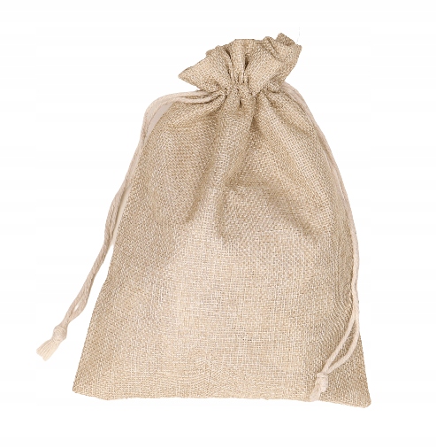 Karty zapakowane w jutowy woreczek.