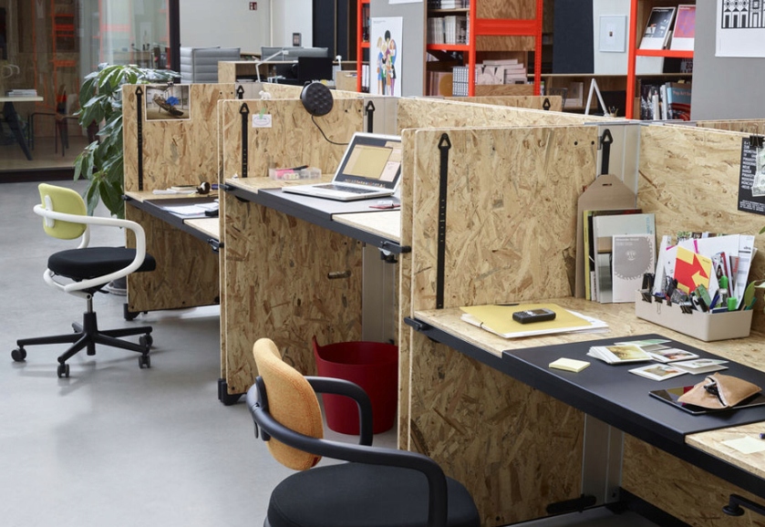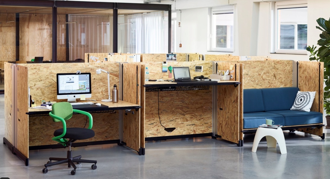 Niemiecki projektant Konstantin Grcic stworzył dla firmy Vitra funkcjonalny system biurowy do samodzielnego montażu , w którym biurka można przekształcić w sofy.