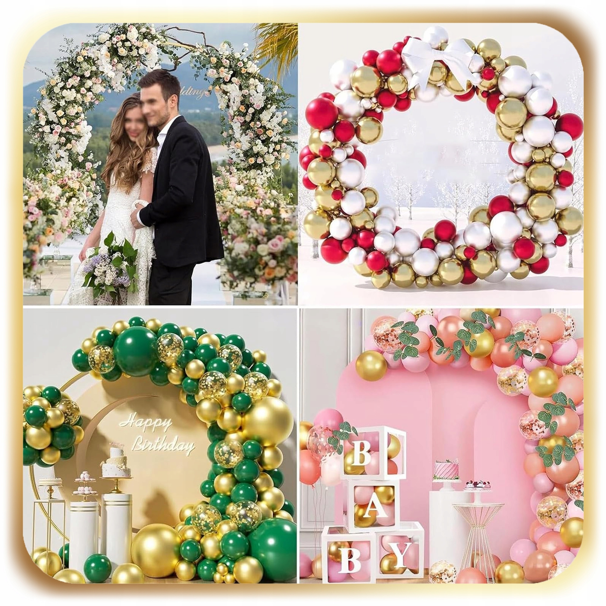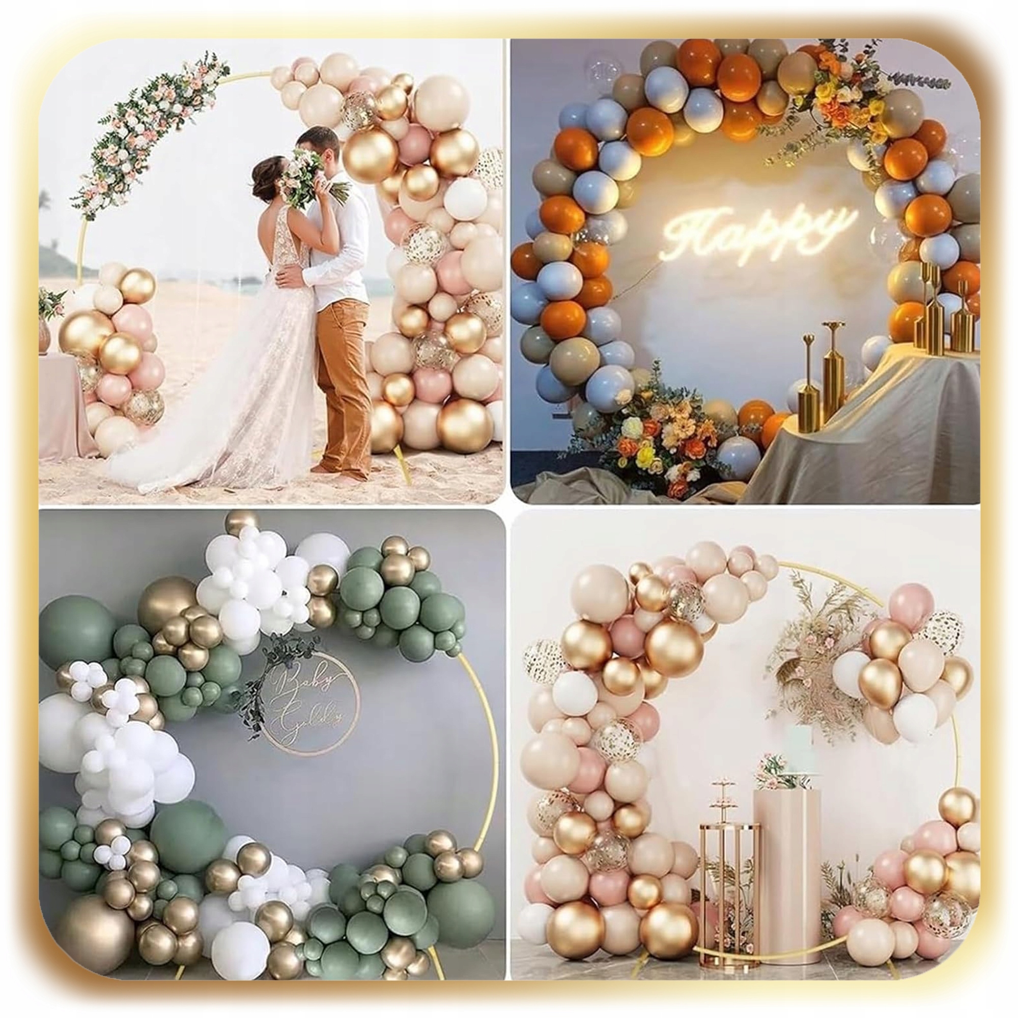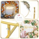 Ten stelaż do balonów w kształcie okręgu o średnicy 200 cm to idealna podstawa do tworzenia efektownych dekoracji z balonów, kwiatów, tkanin i girland.