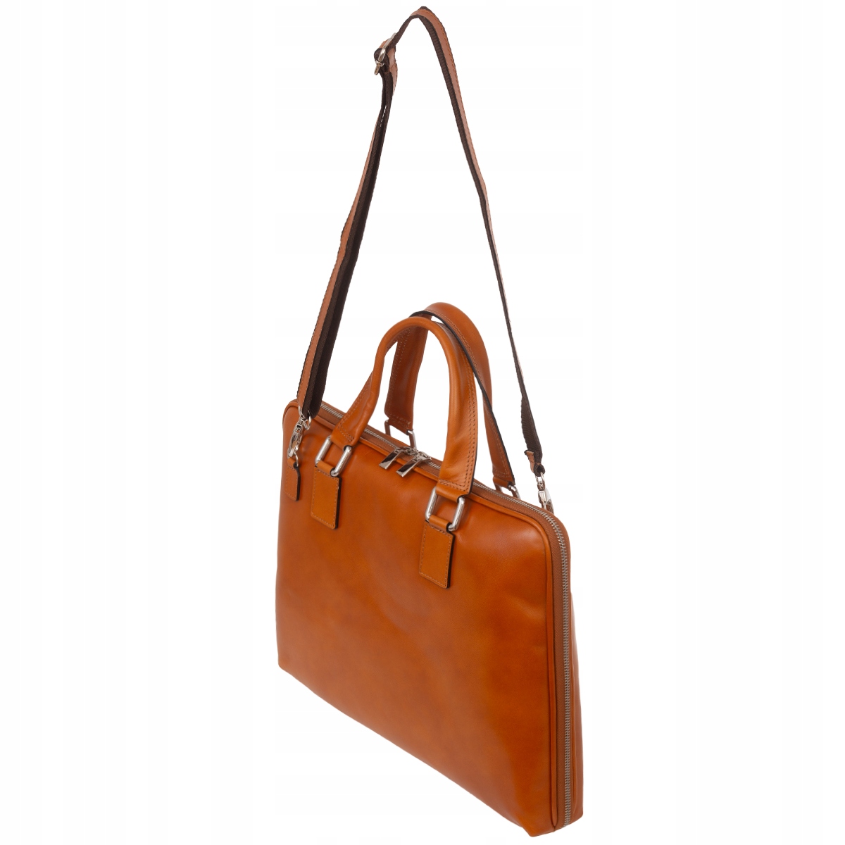 Elegancka Torba damska na laptop, wykonana z włoskiej skóry licowej. W torbie zmieści się laptop lub tablet o przekątnej ekranu do 14,1" wraz z dokumentami, teczką lub telefonem. Torbę można nosić w ręku lub na ramieniu za pomocą odpinanego paska.