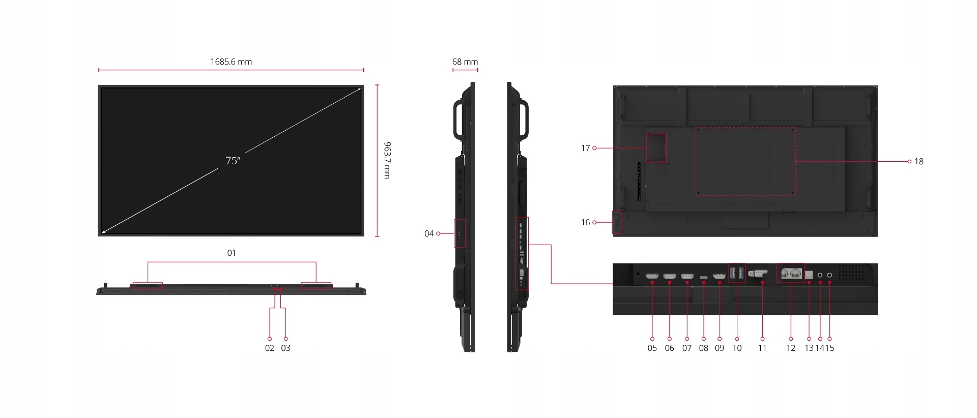 Dwa zintegrowane głośniki o mocy 16 W zapewniają czysty i mocny dźwięk, idealny do samodzielnego użytku w mniejszych pomieszczeniach, takich jak sale konferencyjne i konferencje. W przypadku większych środowisk lub bardziej zaawansowanych konfiguracji audio, porty wejścia/wyjścia audio 3,5 mm umożliwiają bezproblemową integrację z zewnętrznymi systemami audio – idealne do sal lekcyjnych, holów i miejsc publicznych.