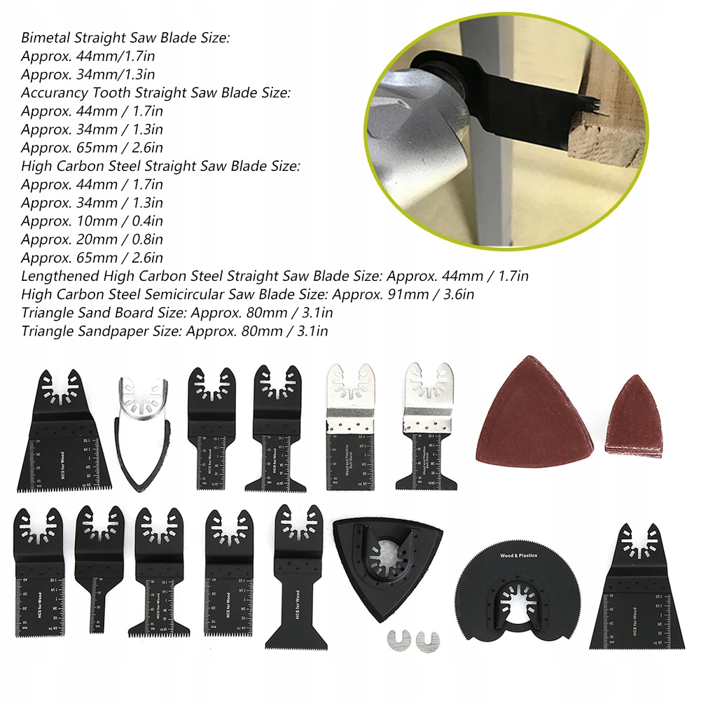 Rozmiar papieru ściernego trójkąta: ok. 80 mm / 3,1 cala
