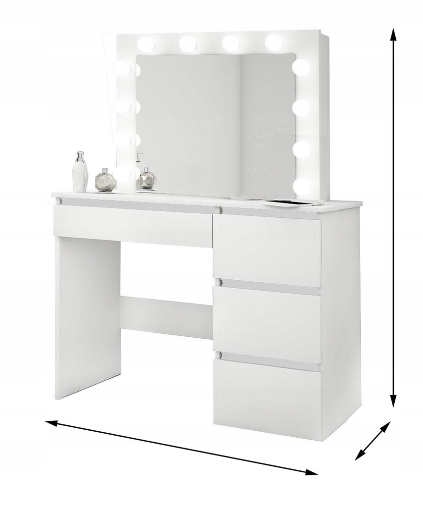 Na powierzchni toaletki znajduje się wbudowane oświetlenie LED, które zapewnia jasne i równomierne światło. To idealne rozwiązanie do precyzyjnego makijażu i pielęgnacji skóry, nawet w słabym oświetleniu.