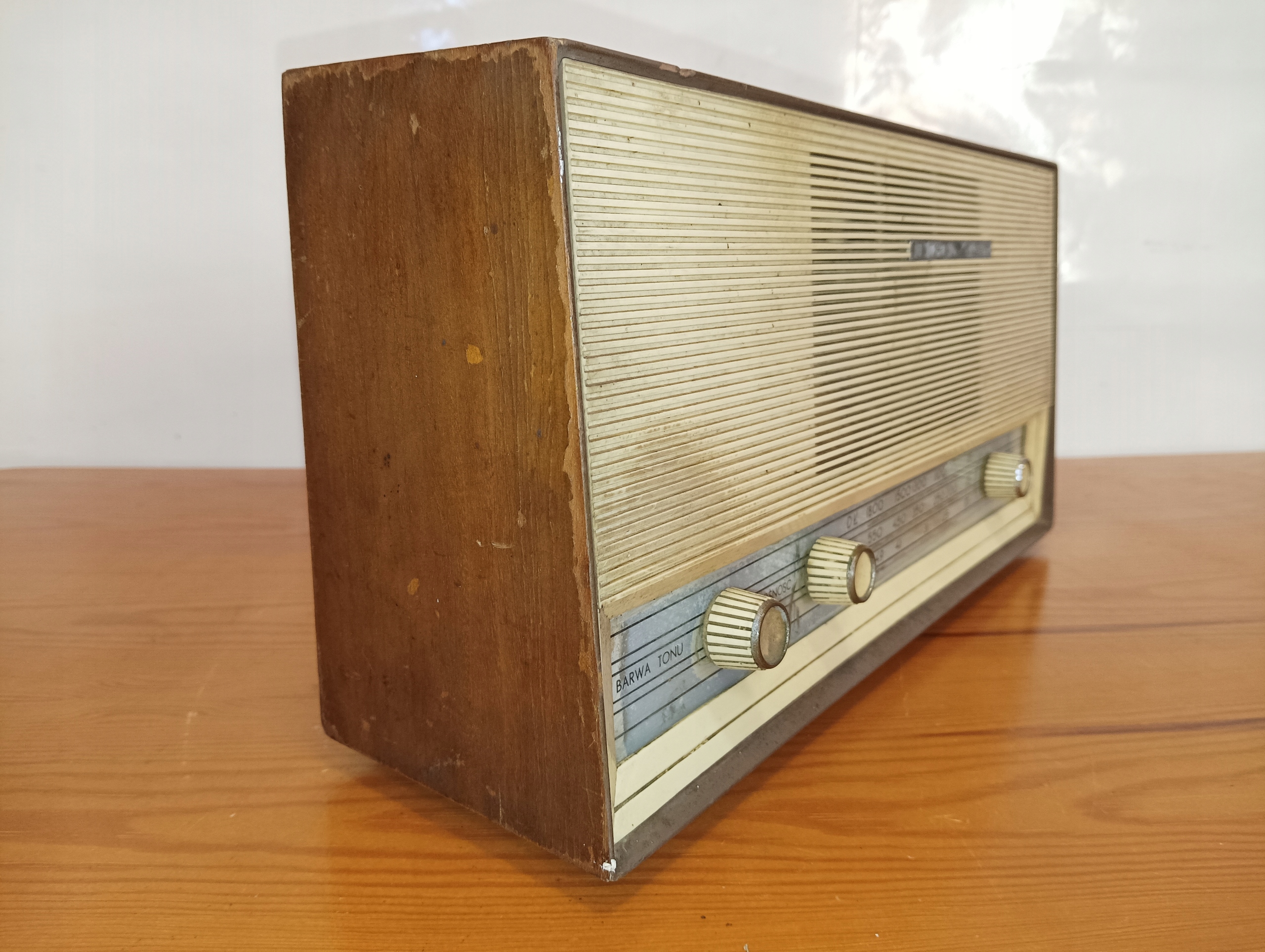 Przedmiotem sprzedaży jest widoczne na zdjęciach stare radio.
