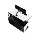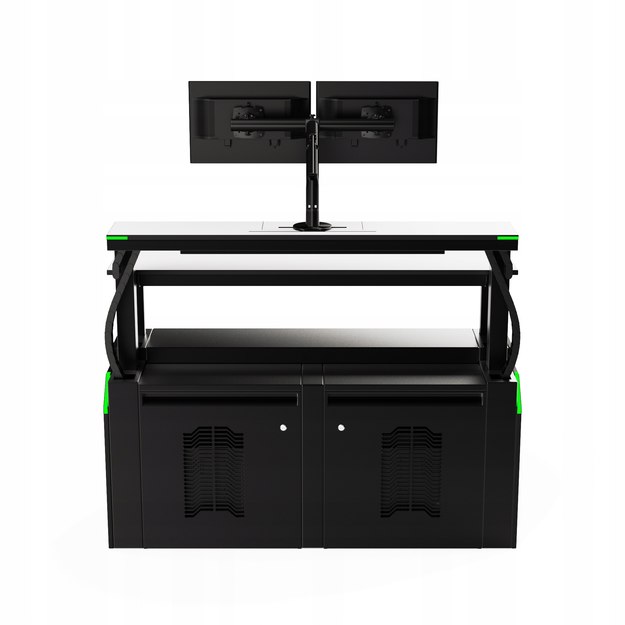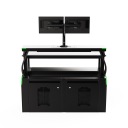 W nasze konsole można zamontować dowolne monitory, komputery i inne akcesoria multimedialne, a także oświetlenie LED, panele sterowania położeniem stanowisk/konsoli oraz zaawansowane systemy sterowania, obsługiwane zarówno poprzez karty zbliżeniowe, panele przyciskowe, jak i panele sterowania dotykowe - wbudowane i skonfigurowane w sposób ustalony wcześniej z Zamawiającym.