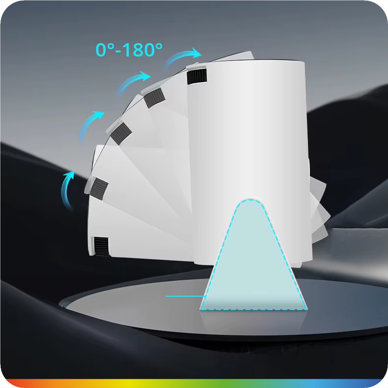 Projektor LED RGB VISION oferuje niezwykle elastyczny kąt projekcji w zakresie 0°–180°, dzięki czemu możesz wyświetlać obraz na ścianie, suficie lub dowolnej powierzchni, dokładnie tak, jak lubisz.