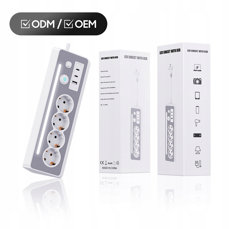 ✅【Gniazda wielokrotne z przełącznikami i diodami LED】