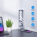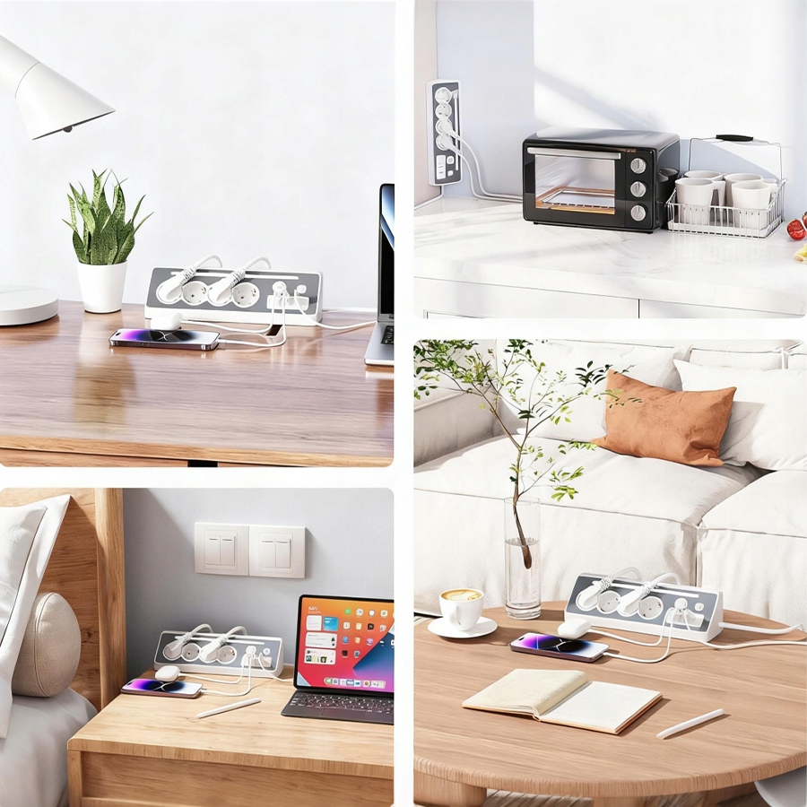 Zasilanie 8 w 1: 4 gniazda zasilania AC (220-250 V) + 3 porty USB (5 V/3,4 A), umożliwiające jednoczesne ładowanie 7 urządzeń.