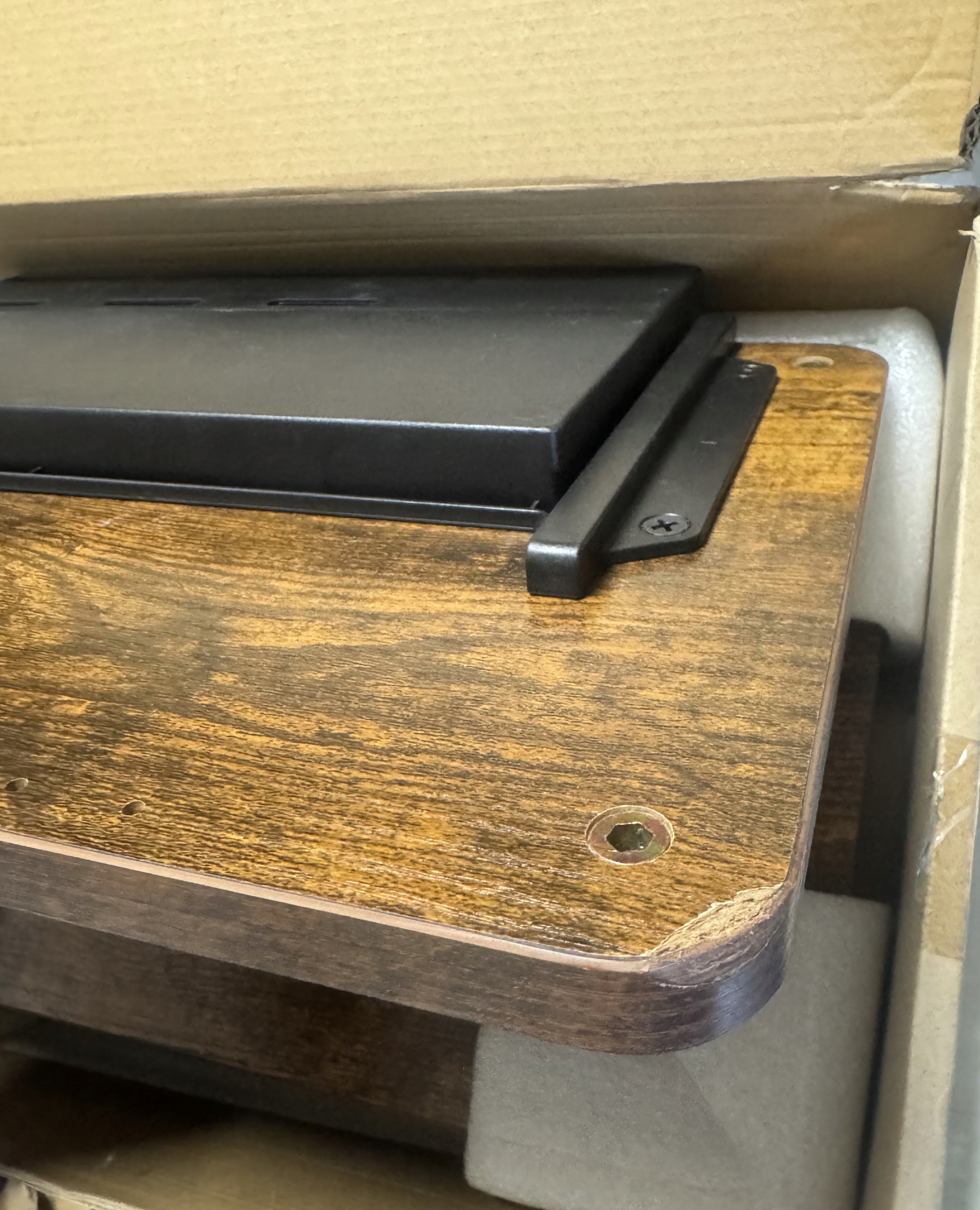 !!! powystawowy - opakowanie podniszczone, w zestawie brakuje 1 śrubki i 3 szt pasków do mocowania kabli, jeden z blatów ma uszkodzony tylny róg - ostatnie zdjęcie w galerii !!!