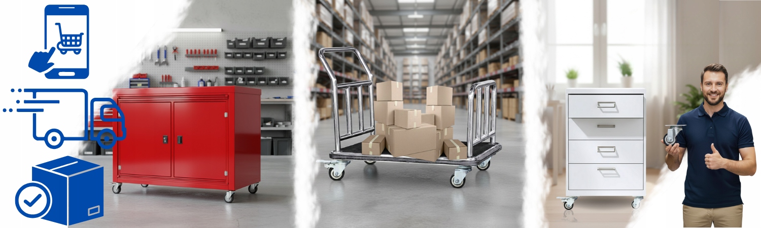 Doskonale sprawdzą się przy sprzęcie warsztatowym i narzędziach, które wymagają mobilności. Ułatwiają organizację przestrzeni roboczej i zapewniają stabilność podczas pracy.