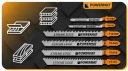 Brzeszczoty Fast Cut (T144D, T101DP, T111C) zapewniają szybki postęp w drewnie i płytach, a modele Clean Cut (T101B, T119BO, T101AO) oferują gładką krawędź i zredukowane wyrwy.