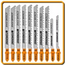 Zestaw 10 szt. z ostrzami HCS o długościach 50–74 mm i uchwycie typu T zapewnia równe, powtarzalne cięcia w drewno, sklejkę i laminaty.