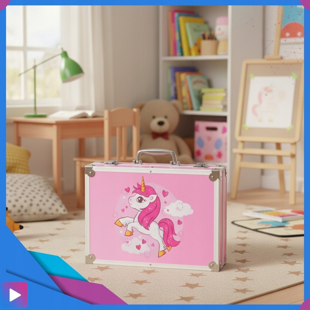 Czy można zabrać zestaw w podróż? Tak – walizka jest lekka i poręczna, idealna na wyjazdy, zajęcia i rodzinne spotkania.