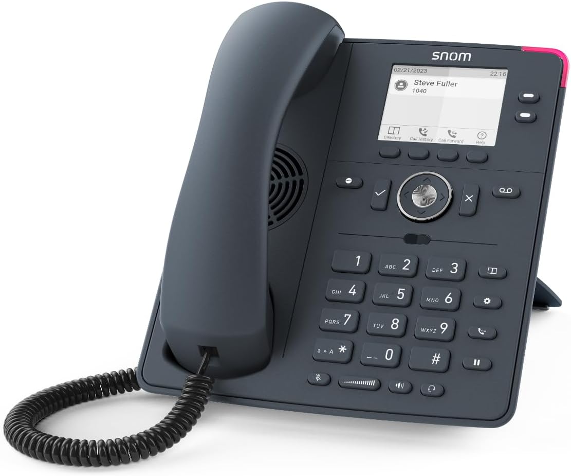 Snom D150 to nowoczesny telefon IP, który zapewnia wysoką jakość połączeń oraz wygodę użytkowania. Wyposażony w dwie tożsamości SIP, umożliwia obsługę wielu kont VoIP, co czyni go idealnym rozwiązaniem zarówno do biur, jak i środowisk home office.