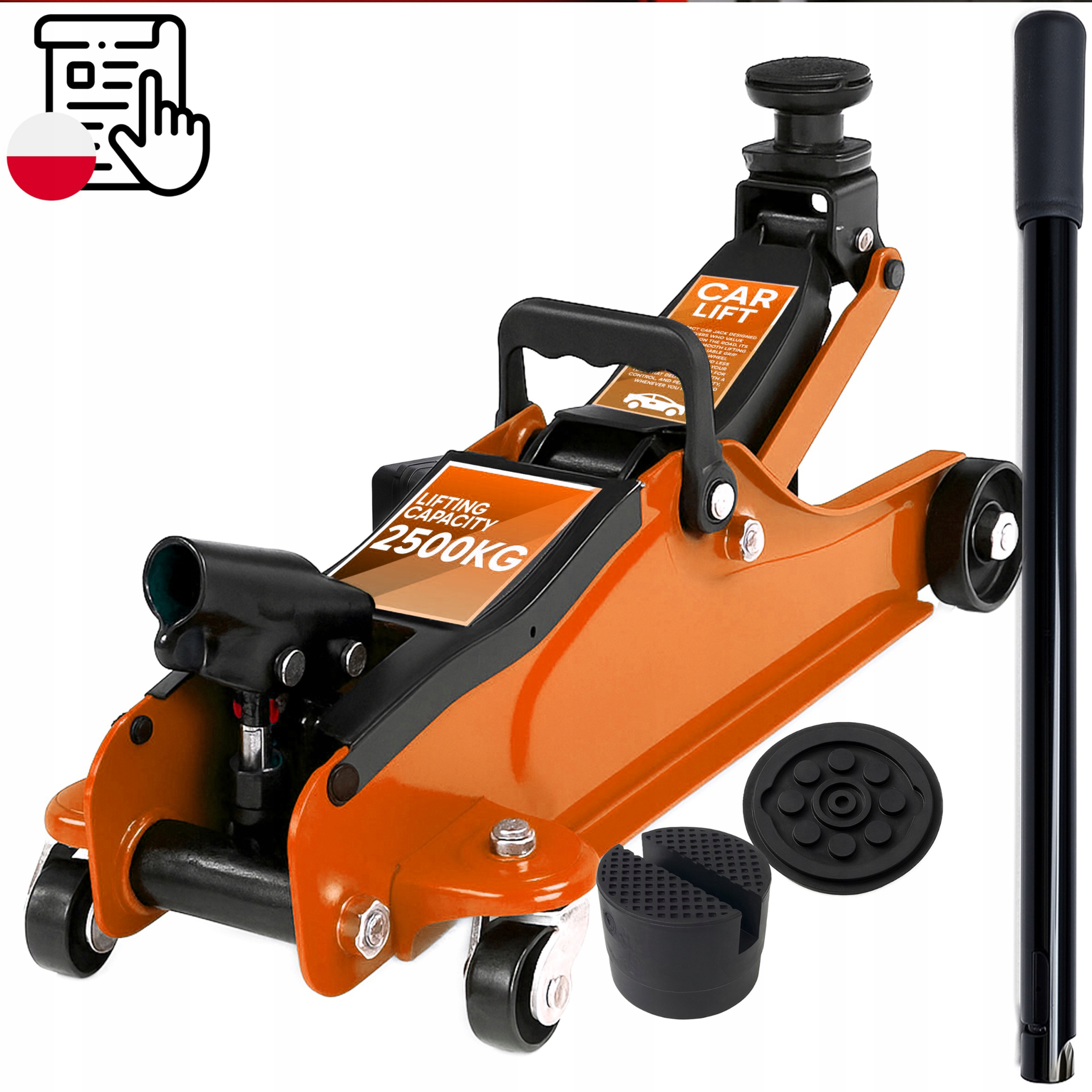 ✍️ Udźwig 2,5 tony ☺️ Zakres podnoszenia 85–399 mm ☀️ Solidna stalowa konstrukcja ✔️ Kompaktowe wymiary 55x23x16 cm ✏️ Wygodna rączka transportowa ✉️ Gumowa podstawka w zestawie ♥️ Stabilna podstawa ♠️ Płynna praca siłownika ♣️ Instrukcja obsługi w języku polskim ✔️ Wysoka precyzja wykonania ⭐