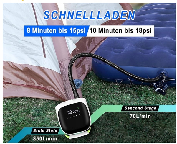Pompka do desek KORMORAN, pompa SUP do desek wiosłowych Elektryczna pompka powietrza: Inflacja/deflacja Pompa powietrza SUP 12 V DC z funkcją automatycznego wyłączania do nadmuchiwanych desek wiosłowych na stojąco, kajaków, łodzi