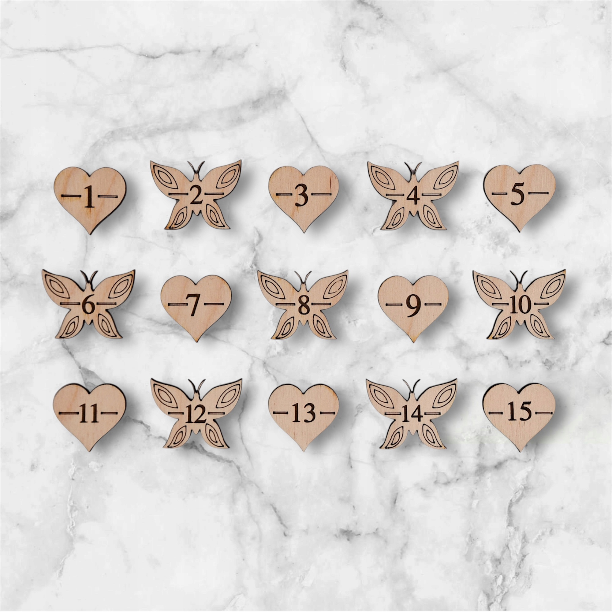 • Zestaw zawiera znaczniki wieku od 1 do 15 lat – w formie serduszek i motyli