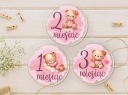 W zestawie jest 15 dużych okrągłych tabliczek z plexi z niezmiennymi grafikami + jedna tabliczka z podanym przez Państwo imieniem dziecka.