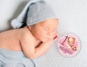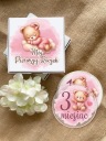 Zestaw 16 dużych okrągłych tabliczek z bezbarwnego plexi do zdjęć, zapakowanych w eleganckie białe pudełko z nadrukiem to idealny prezent dla przyszłych rodziców. W zestawie znajduję się karta z imieniem dziecka.