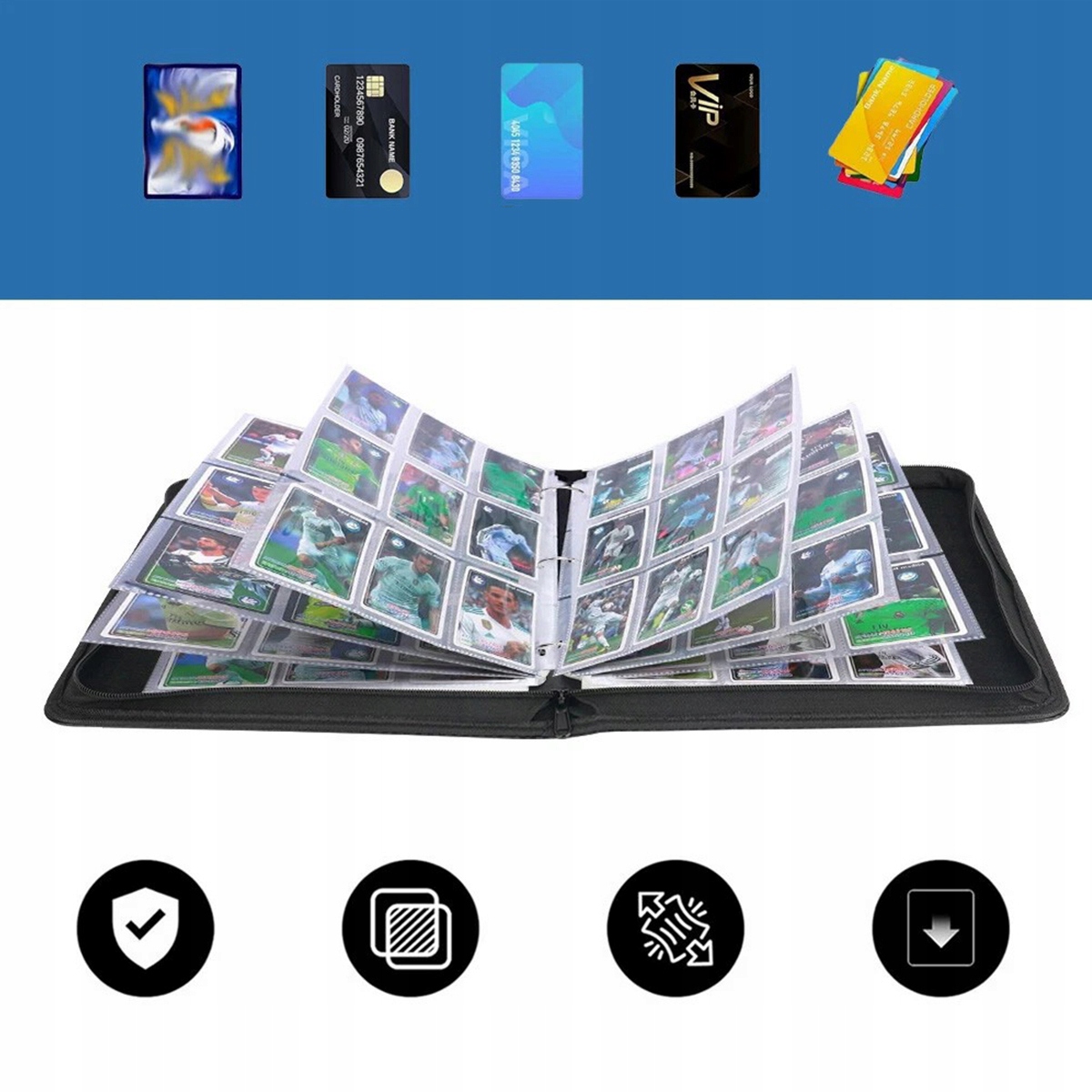 ✔️Unikalny design: Segregator z koszulkami wykonany jest z wodoodpornej pianki EVA i skóry PU, co zapewnia dobrą odporność na wstrząsy, kurz i wilgoć. Starannie wykonany, prosty design z eleganckimi przeszyciami i wysokiej jakości wykonaniem sprawia, że ten segregator na karty kolekcjonerskie to doskonały sposób na przechowywanie i eksponowanie ukochanych kolekcji lub wykorzystanie go jako albumu na długi czas, zapobiegając zgubieniu, zagnieceniom i rozdarciom.