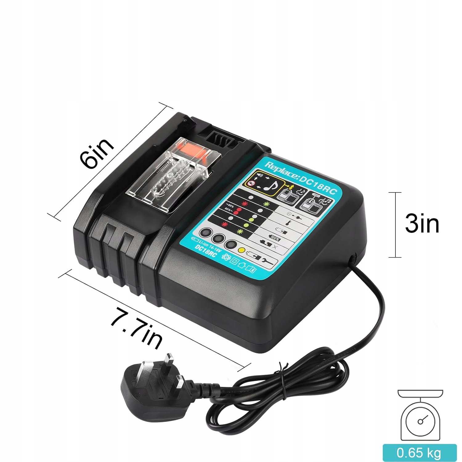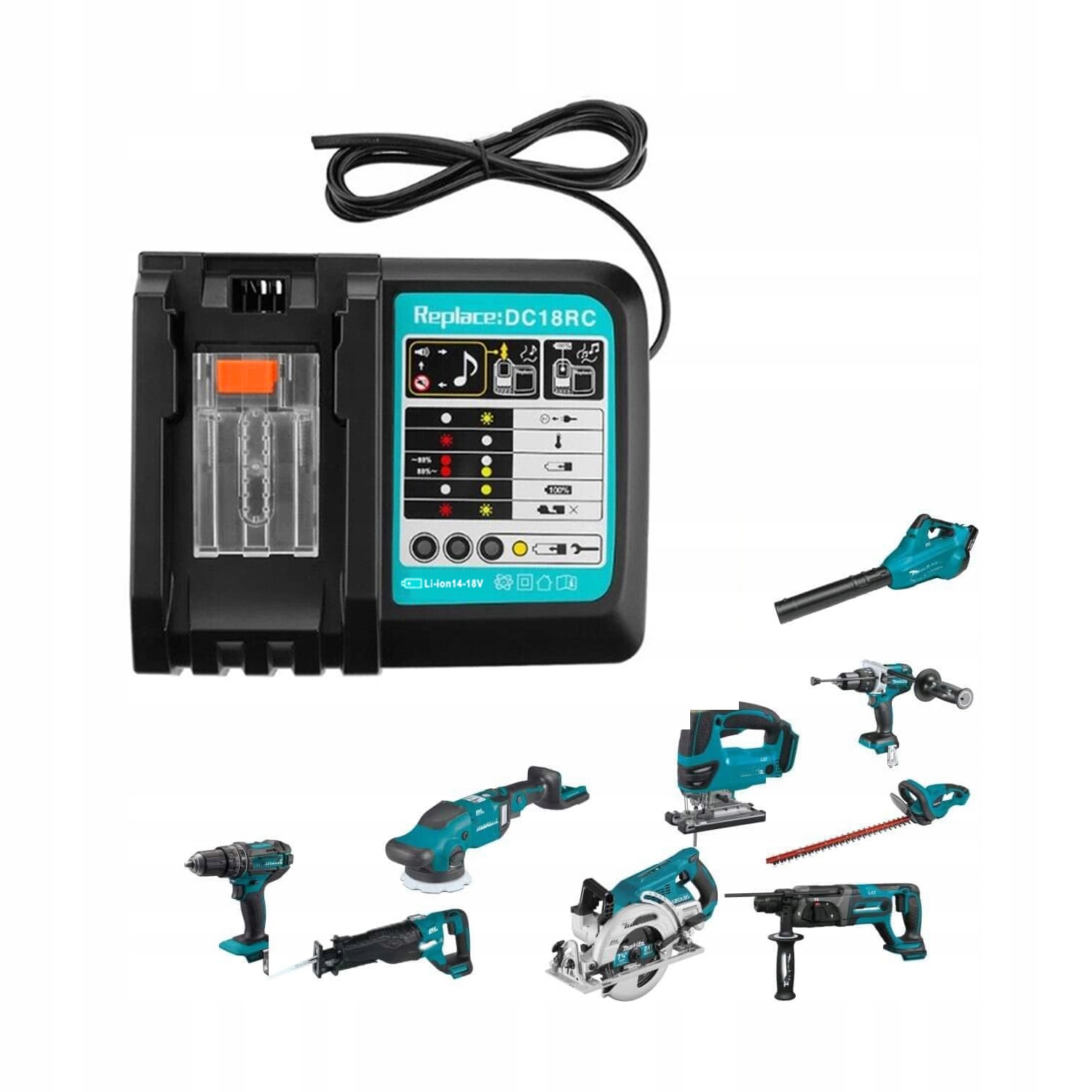 -Kompatybilny z napięciem 14,4 V/18 V do ładowania akumulatorów litowo-jonowych do elektronarzędzi Makita (nie nadaje się do napięcia 10,8 V).