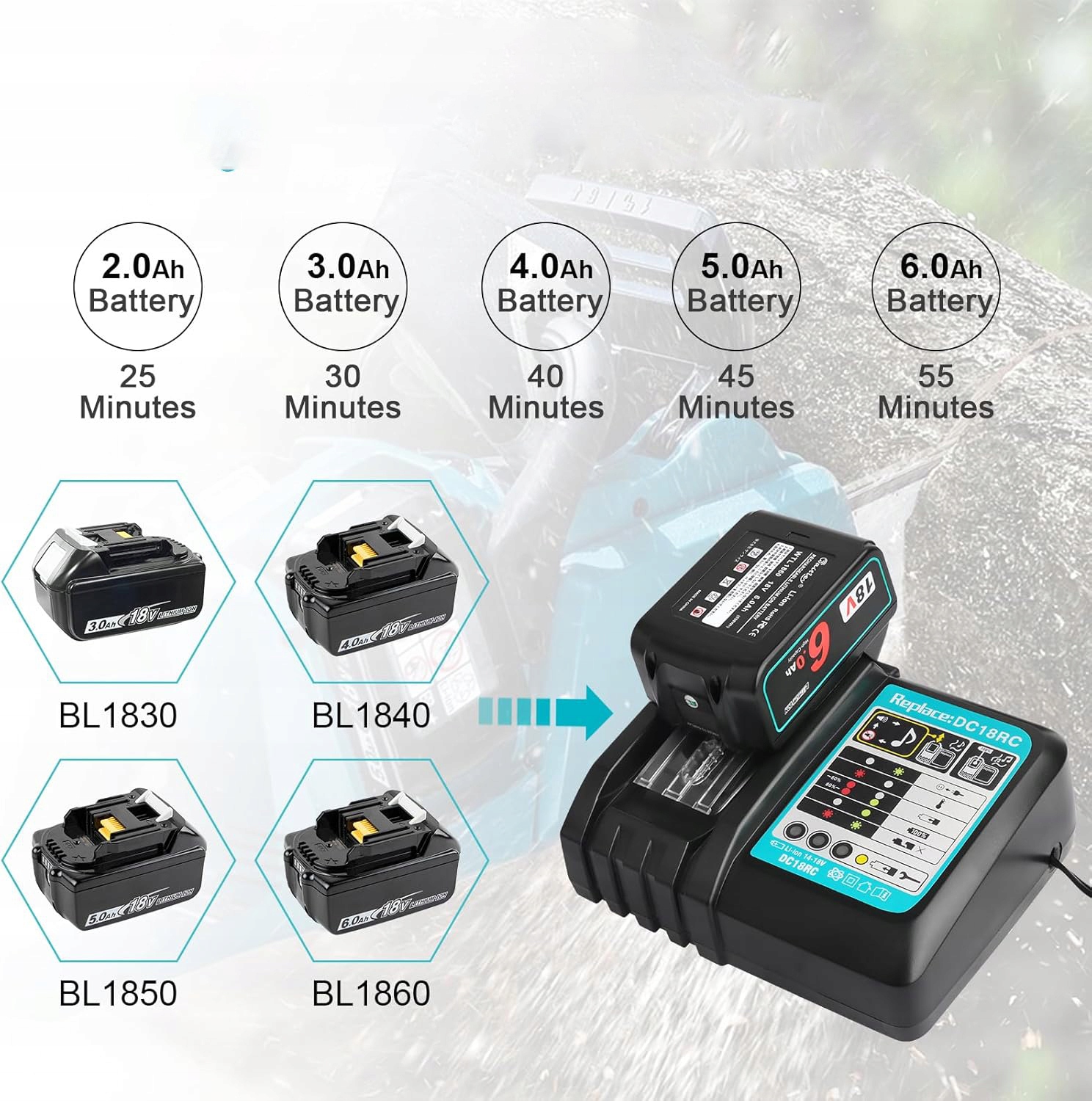 ⚡【Szybka ładowarka 3A】W pełni kompatybilna z akumulatorami litowo-jonowymi Makita 14,4–18 V. Akumulator litowo-jonowy 18 V: BL1815B BL1820B BL1830B BL1835B BL1840B BL1845B BL1850B BL1860B itd. Akumulator litowo-jonowy 14,4 V: BL1415 BL1430 BL1430B BL1440 BL1450 itd.