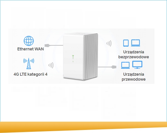 • Tryb routera Wi-Fi – Podłącz przewód Ethernet do portu LAN/WAN i korzystaj z połączeń przewodowych w przypadku braku dostępu do sieci 4G.