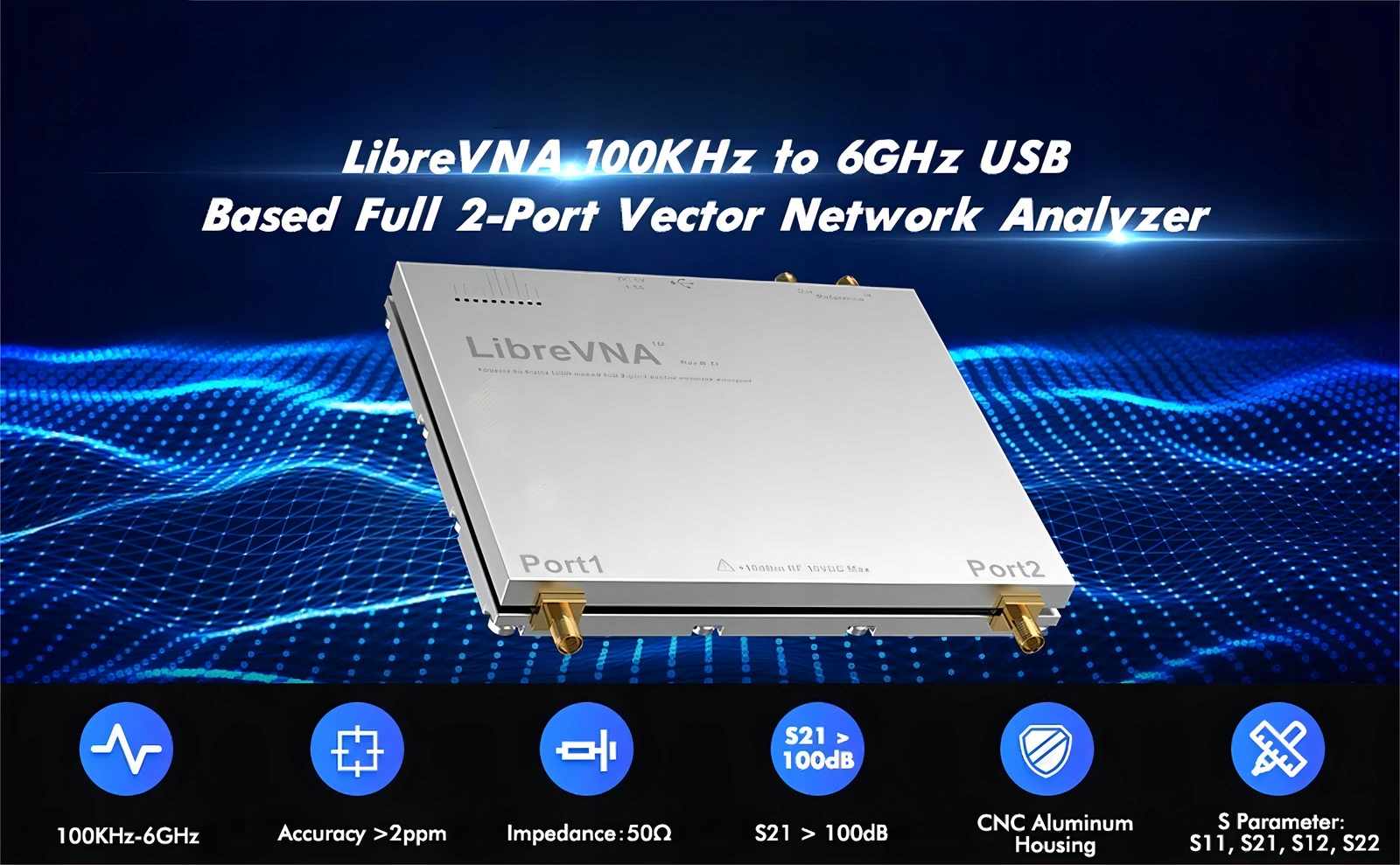 LibreVNA to nowoczesny, w pełni dwuportowy analizator sieci wektorowej (VNA), zasilany przez złącze USB. Zaprojektowany przez Jankae, wykorzystuje zaawansowane przetwarzanie sygnałów w układzie FPGA oraz 3 przetworniki ADC do równoległego pobierania danych. Dzięki temu wykonuje ponad 10 000 pełnych, dwuportowych pomiarów w czasie krótszym niż 1 sekunda.
