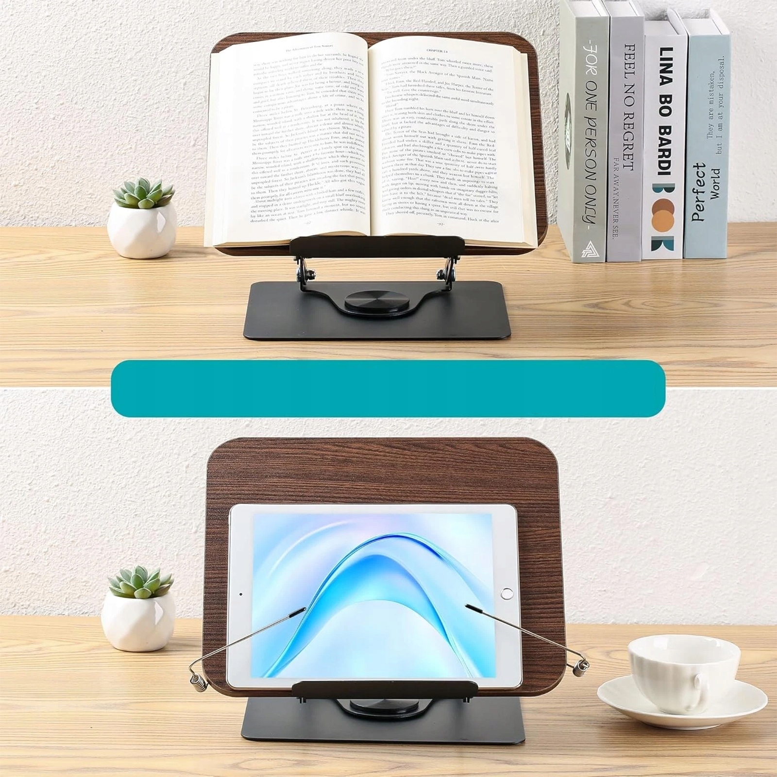 Wysokiej jakości i przemyślany materiał: Wykonany z najwyższej jakości, odpornego na ciepło, olej i zarysowania drewna – w połączeniu z solidną podstawą ze stopu aluminium – ten stojak na książki oferuje maksymalną trwałość i bezpieczne podparcie przy każdym użyciu.