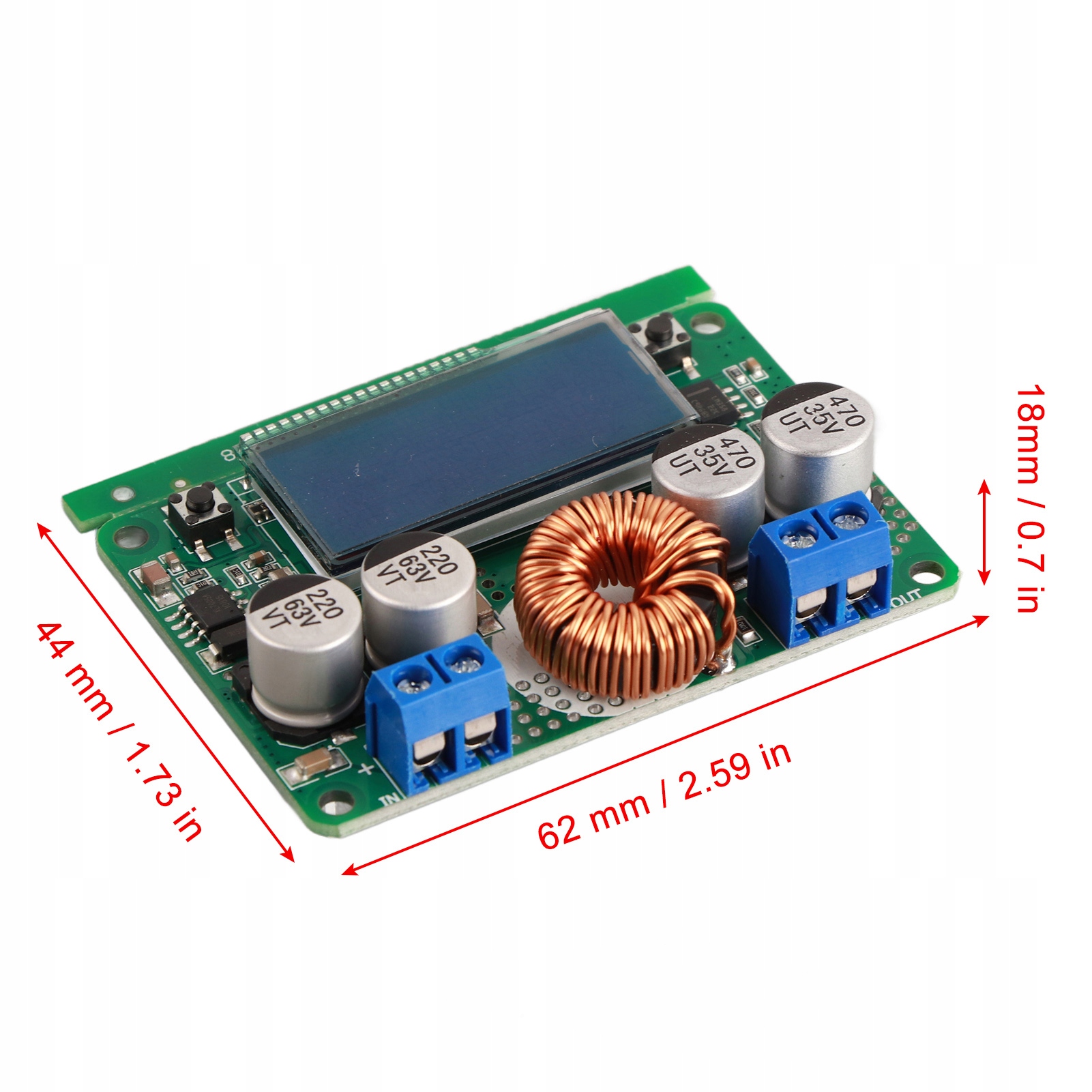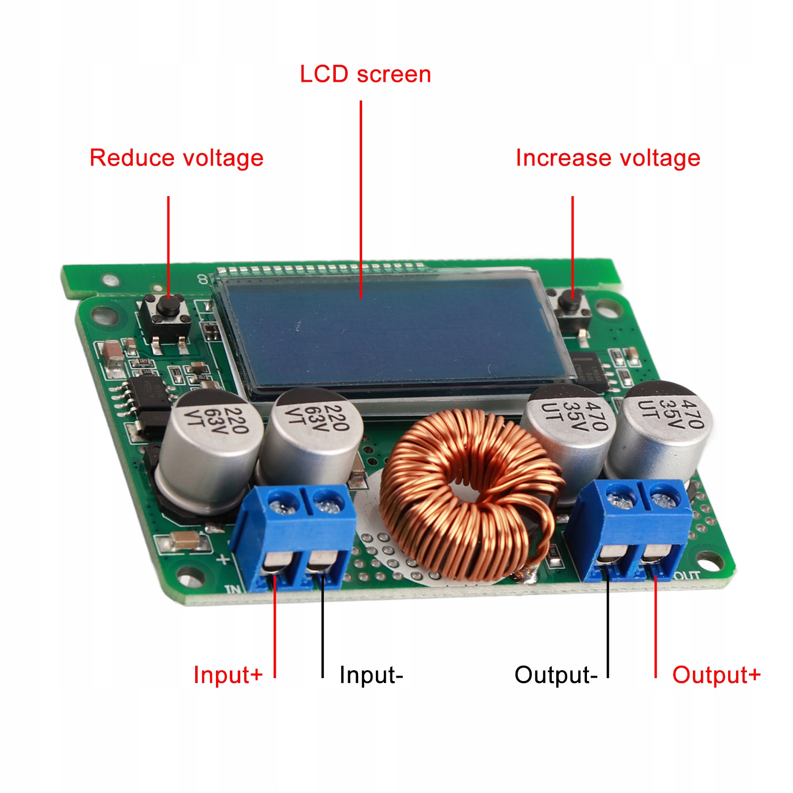 Napięcie wejściowe: DC 8 V ~ 60 V (zalecane w granicach 55 V, napięcie wejściowe musi być wyższe niż napięcie wyjściowe o 1 V powyżej)