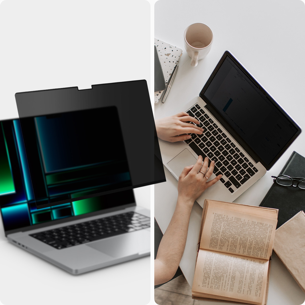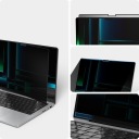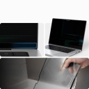 Zastosowany filtr przyciemniający polega na tym, że zawartość ekranu widoczna jest jedynie dla osób siedzących na wprost komputera. Dla tych, którzy patrzą pod kątem, zawartość ekranu staje się niewidoczna. To oznacza, że możesz teraz zrelaksować się w miejscach publicznych, nie martwiąc się o niepożądane spojrzenia lub ciekawskie oczy. Twoje dane są bezpieczne i to Ty masz nad nimi pełną kontrolę.