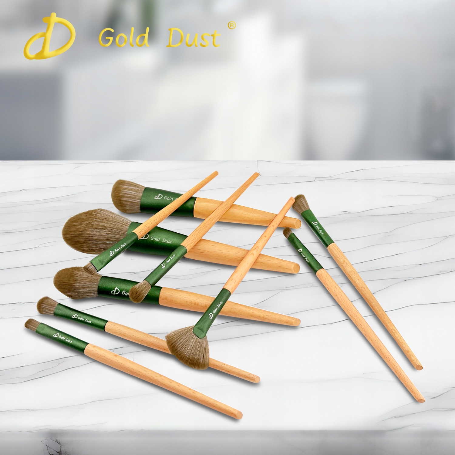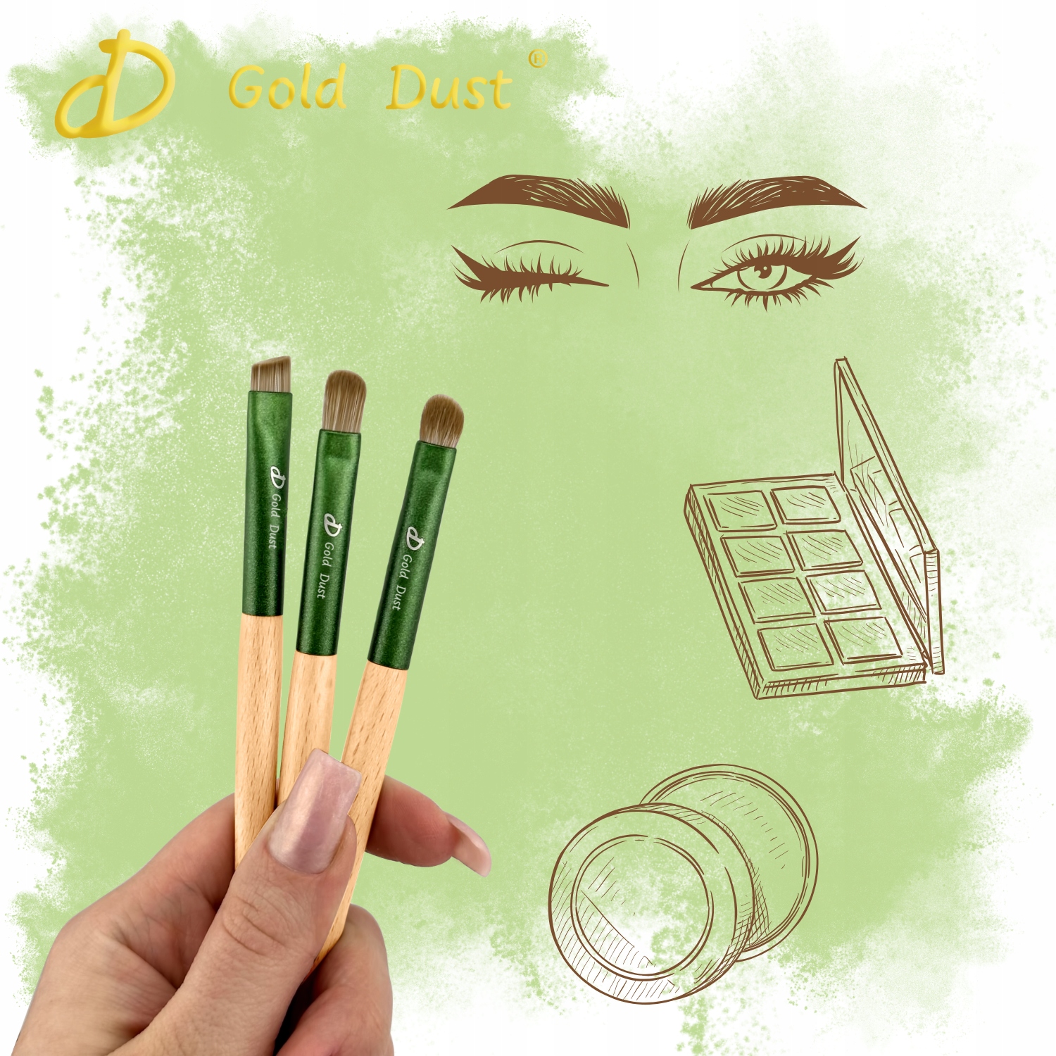 Trzonki pędzli wykonane są z wysokiej jakości drewna bukowego, które charakteryzuje się wyjątkową trwałością, elegancją i odpornością na uszkodzenia. Bukowe drewno jest cenione za swoją gładkość i naturalne ciepło, które sprawia, że pędzle dobrze leżą w dłoni, zapewniając wygodę użytkowania. Starannie wykończone zielonymi akcentami z wygrawerowanym logo Gold Dust, nadają zestawowi wyjątkowego stylu.