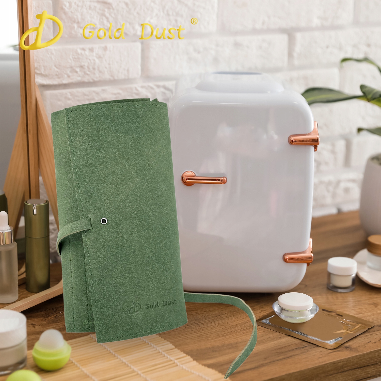Pędzle są zapakowane w eleganckie, oliwkowe etui wykonane z trwałego materiału, które zapewnia ochronę pędzli przed zabrudzeniami i uszkodzeniami. Kompaktowy design pozwala na łatwe przechowywanie oraz zabranie zestawu w podróż. Idealne na prezent – subtelne logo Gold Dust podkreśla jakość i dbałość o detale.