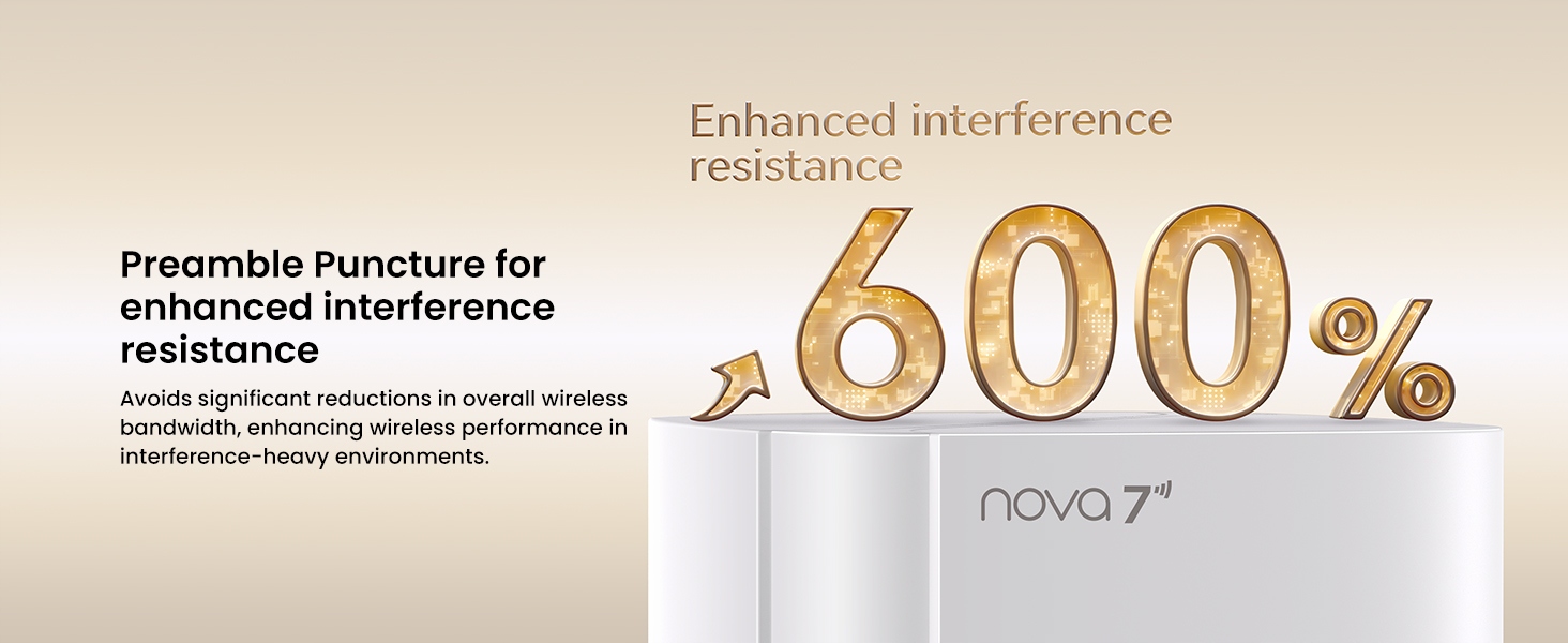 Dzięki integracji 5 wewnętrznych anten, 5 modułów mocy FEM oraz chipa Wi-Fi 7 wykonanego w procesie 6 nm, system Mesh WiFi 7 zapewnia pełne pokrycie i ultra-stabilny sygnał w całym domu, oferując najbardziej niezawodne połączenie dla każdego urządzenia.