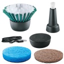Wielofunkcyjna i wydajna szczotka UniversalBrush ułatwia życie, oferując wszechstronną pomoc w usuwaniu lekkich i uporczywych zabrudzeń. Wydajny silnik zapewnia niemal stałą prędkość obrotową szczotki i umożliwia wykonanie najtrudniejszych prac porządkowych. Szeroki asortyment akcesoriów umożliwia stosowanie narzędzia do różnego rodzaju powierzchni i materiałów. Dzięki ochronie przed strugą wody (IPX5) narzędzie jest odpowiednie także do stosowania na mokro. Szczotka doskonale radzi sobie z szorowaniem płytek i fug, mebli ogrodowych, piekarnika, garnków i patelni, szyb w kabinach prysznicowych, a także wąskich przestrzeni, np. kranów i pryszniców. To poręczne narzędzie oferuje swobodę pracy bezprzewodowej i można je naładować za pomocą przewodu micro USB.