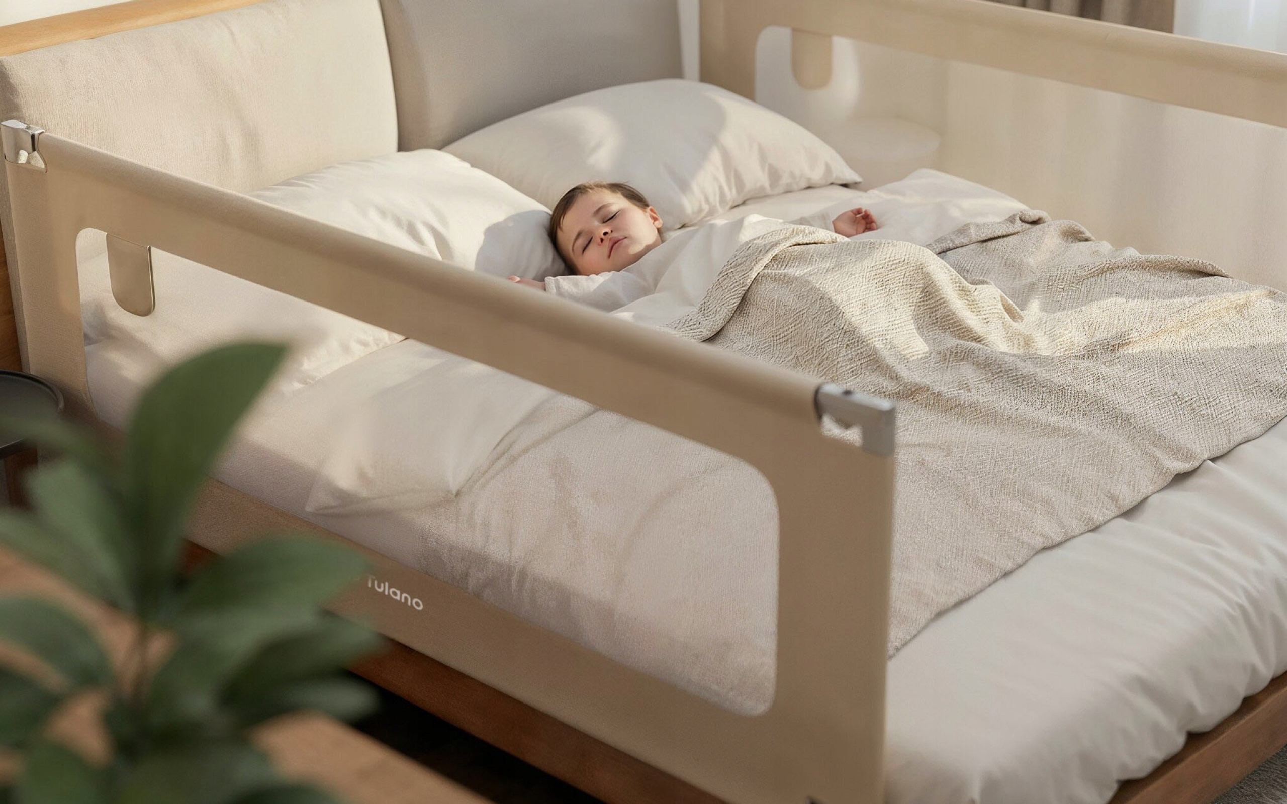 Barierka chroni dziecko przed stoczeniem się i upadkiem z łóżka, gwarantując stabilne zabezpieczenie łóżka i spokojny sen każdej nocy.