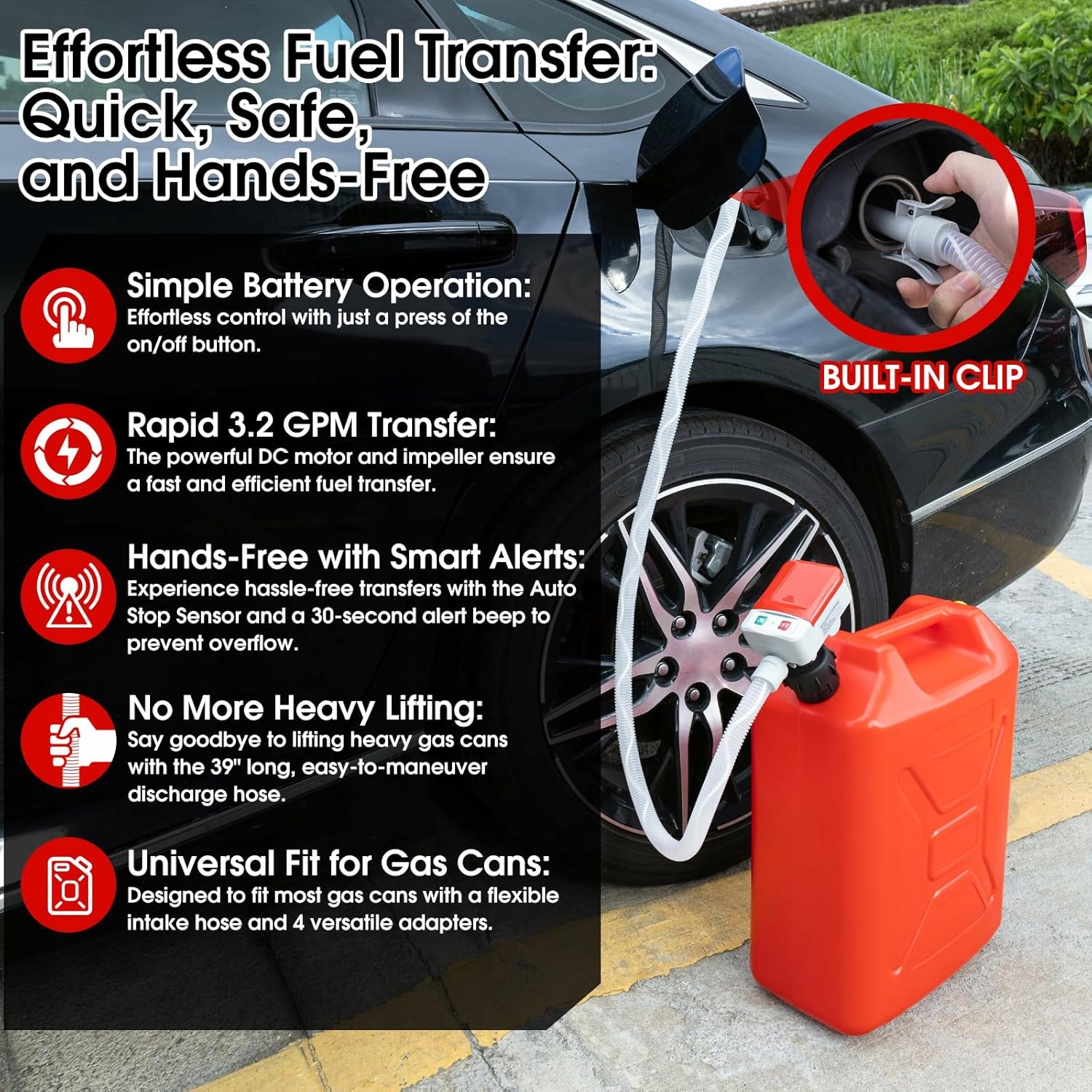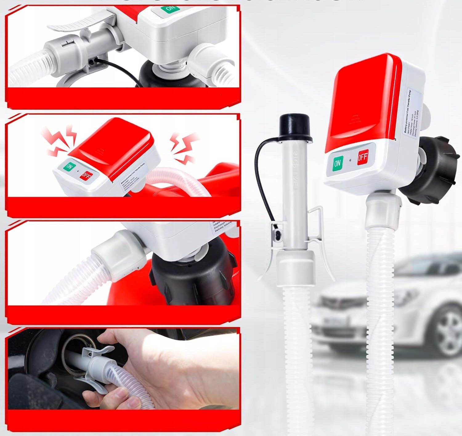 PORTABLE FUEL PUMPKompaktowa konstrukcja, lekka waga + praktyczna torba – łatwo schować w bagażniku, garażu lub szafce z narzędziami.