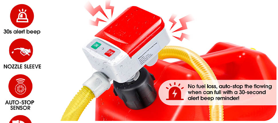 Sensor parowania w wylocie + sygnał ostrzegawczyZapobiega rozlewom, wyciekom i przelewom paliwa – czujnik automatycznie wyłącza pompę po osiągnięciu poziomu płynu, a 30-sekundowy pitido ostrzega o zbliżającym się pełnym zbiorniku.