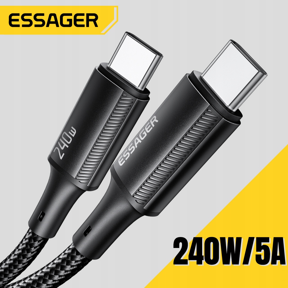 ESSAGER® 240W USB-C ↔ USB-C w standardzie PD3.1 to przewód klasy premium, łączący nowoczesny design z maksymalną wydajnością. Wyposażony w e-marker, dla pełnej zgodności ze standardami – zapewnia pełną kontrolę i bezpieczeństwo.
