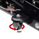 Ten solidny podnośnik wyposażony jest w solidną jednostkę hydrauliczną oraz dwa stałe i dwa obrotowe metalowe kółka.