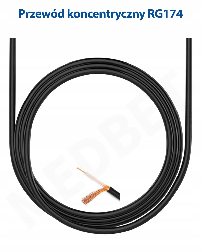 • Wysokiej jakości nisko stratny przewód koncentryczny RG174