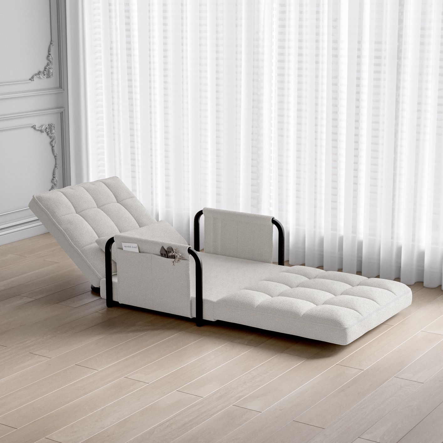 2. 5 regulowanych kątów: wyposażony w 5 ustawień kąta nachylenia (obsługujących tryby "Sleep, Relax, Coffee, Reading"), łatwo przełącza się między trybami sofy, leżaczka i łóżka, aby spełnić różne potrzeby.