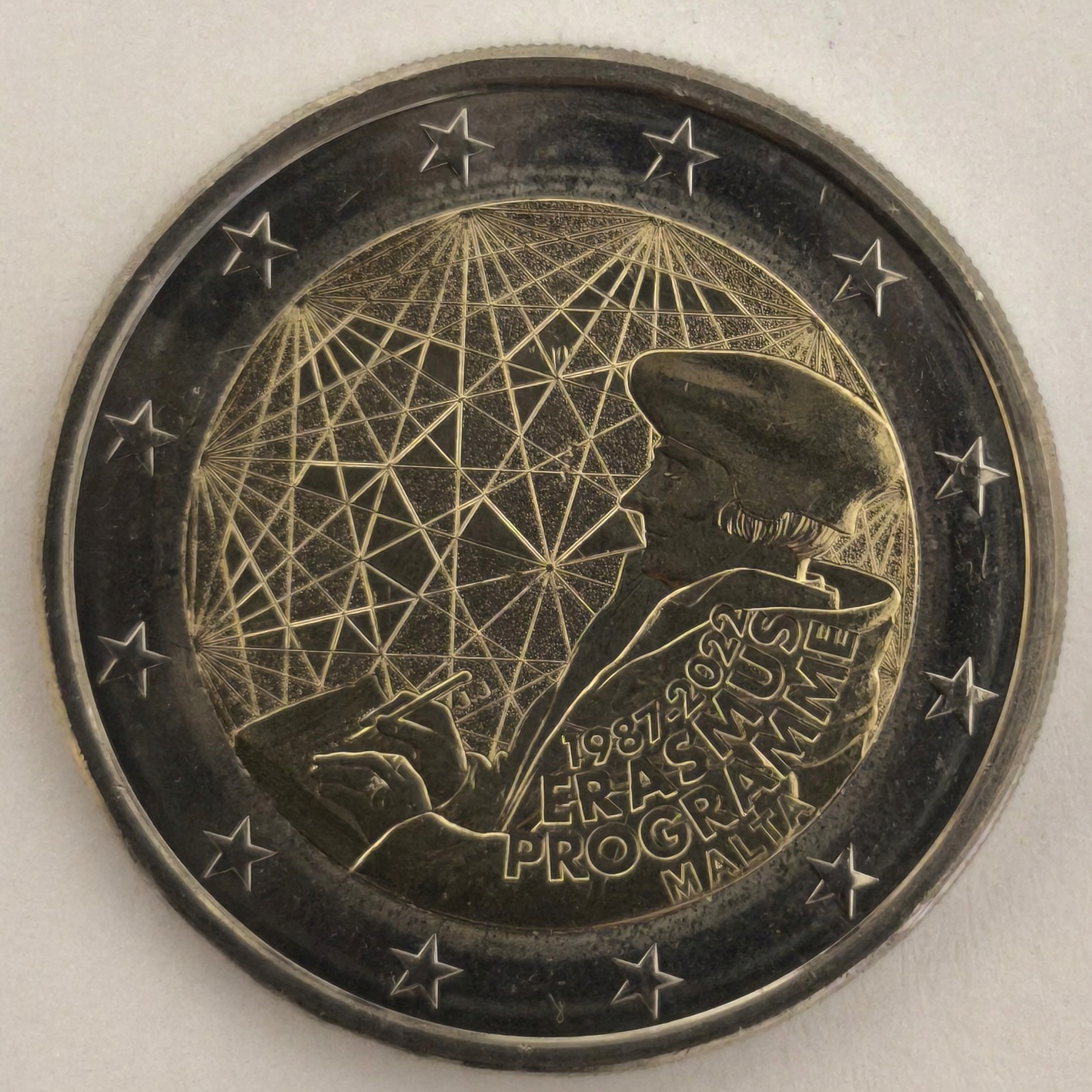 19 państw strefy euro wyemitowało w lipcu 2022 roku wspólną monetę okolicznościową upamiętniającą 35-lecie programu Erasmus. Jest to piąta wspólna emisja od wprowadzenia waluty euro do obiegu. Na monecie widnieje wizerunek słynnego portretu Erazma z Rotterdamu namalowanego przez Hansa Holbeina Młodszego w 1523 roku. Za Erazmem widnieje sieć symbolizująca wymianę intelektualną i kulturalną między studentami z różnych narodów.