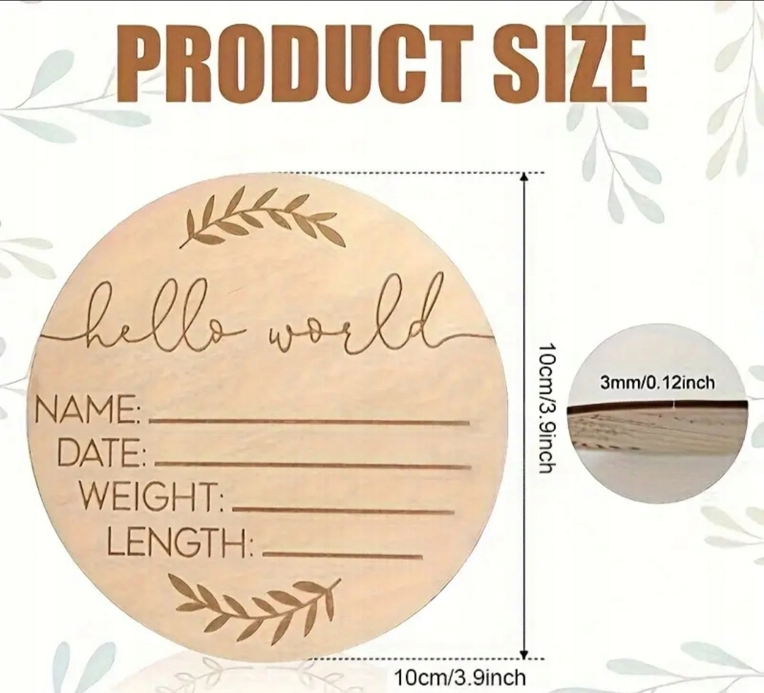 1 × drewniana tabliczka „Hello World” lub karty do zdjęć miesięcznych 1–12 (papierowe)