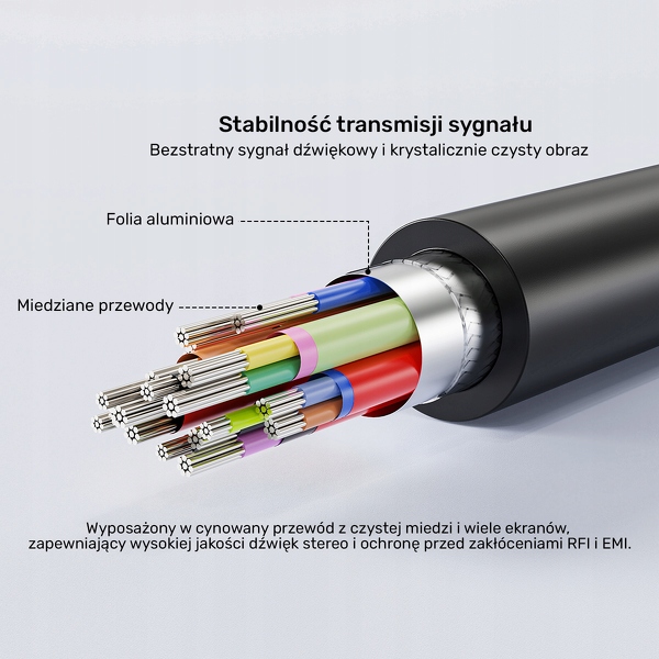 Pozłacane wtyki – wtyki końcówek kabla zostały pokryte złotem, aby zapewnić najwyższa jakość sygnału.