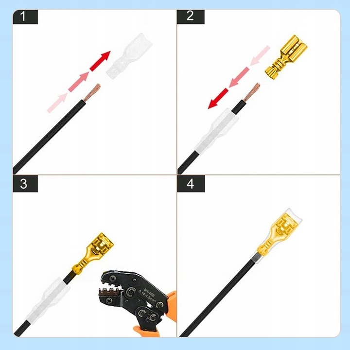 Większość końcówek zamontujesz zwykłą zaciskarką lub kombinerkami — poradzą sobie nawet osoby początkujące.