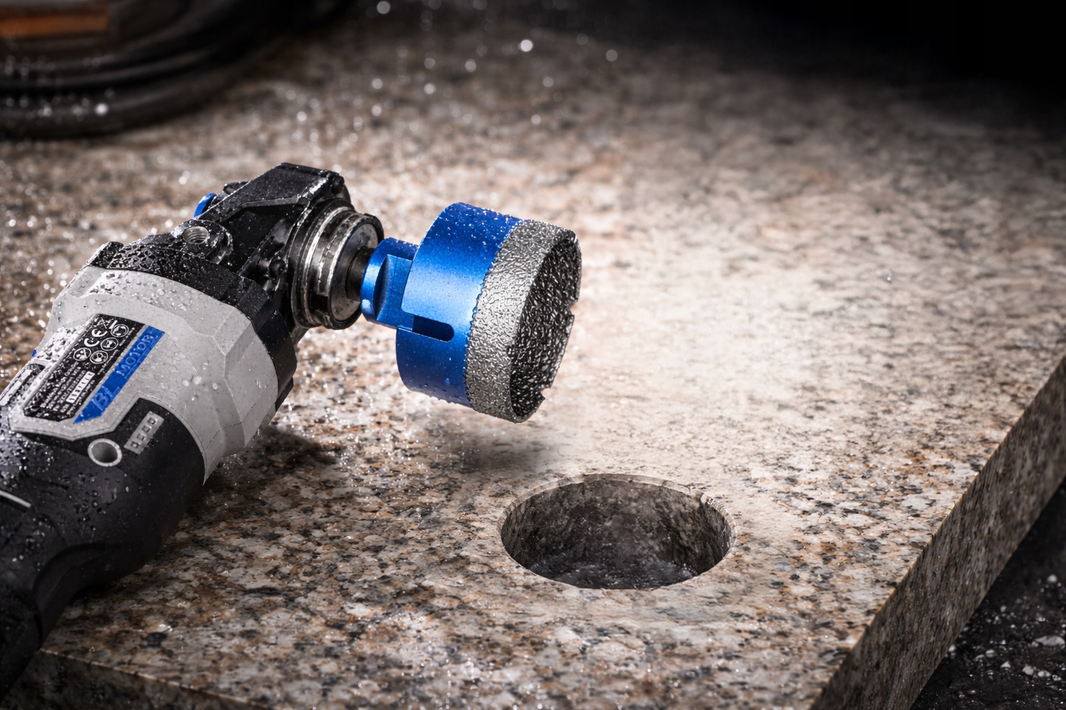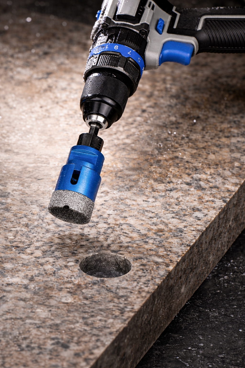 • Otwornice diamentowe w rozmiarach 6 mm, 8 mm, 10 mm, 35 mm, 68 mm
