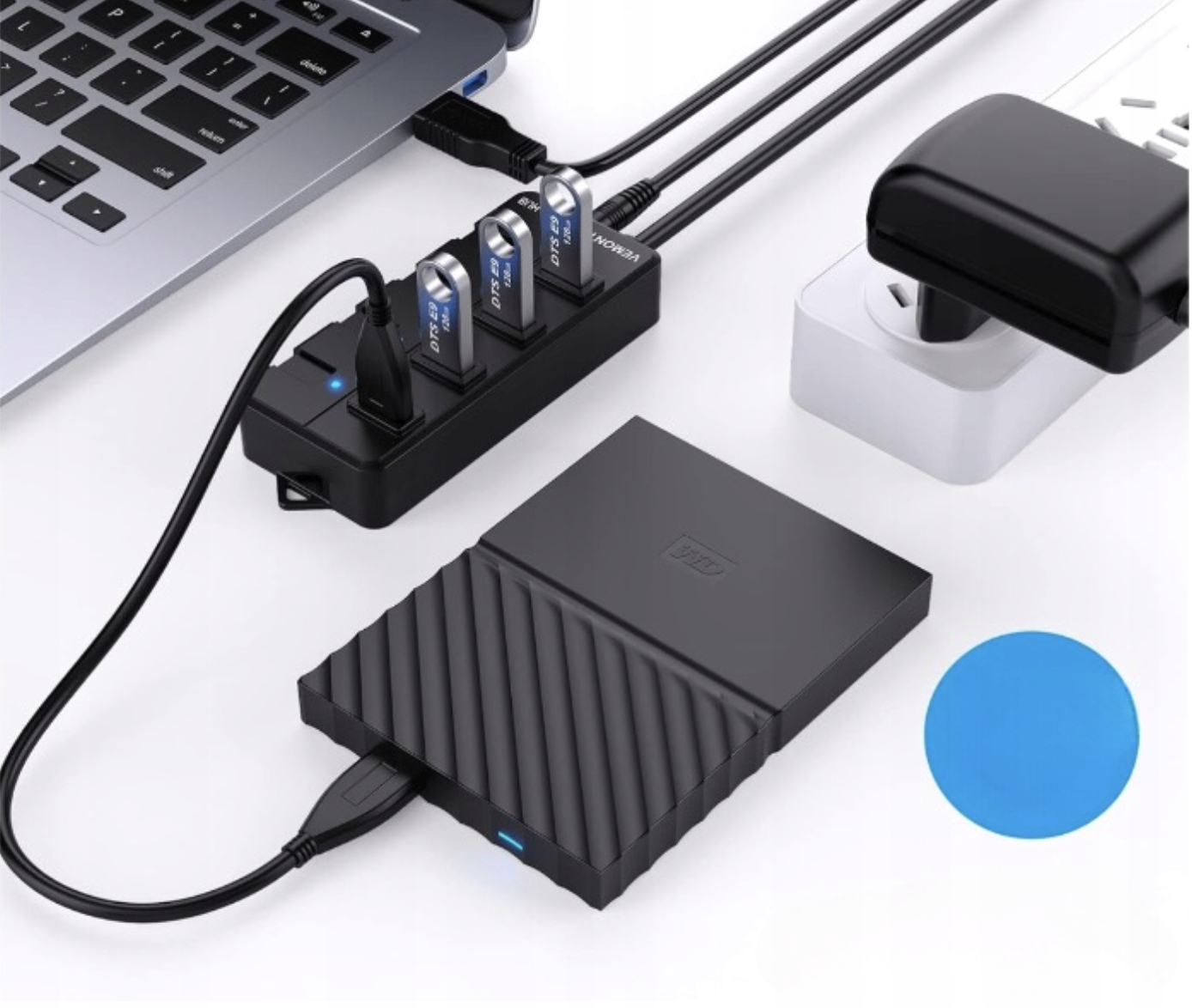 【Super Speed USB Hub z zasilaczem】VEMONT USB 3.0 hub aktywny z zasilaczem obsługuje prędkość przesyłania danych do 5 Gbps. Rozdzielacz USB z zaktualizowaną wersją większego zasilacza 5 V/3 A, za pomocą którego można obsługiwać kilka urządzeń USB jednocześnie. W szczególności w przypadku urządzeń USB, takich jak zewnętrzne dyski twarde o dużej pojemności, należy używać zasilacza, aby zapewnić stabilne przesyłanie danych.